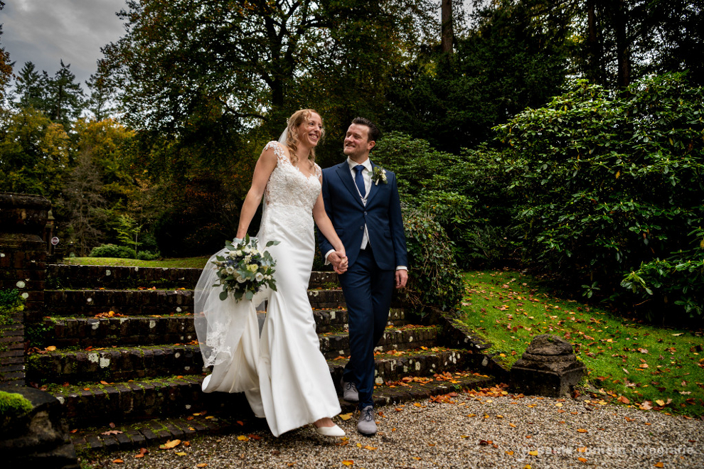 Na al die jaren als trouwfotograaf kan ik bijna mijn bureau wel neerzetten op het kasteel De Hooge Vuursche. In deze prachtige omgeving heb ik al zo vaak gefotografeerd dat ik alle plekjes voor mooie foto's van het bruidspaar samen wel weet te vinden. Ik weet ook hoe de zon daar draait en hoe ik rekening moet houden met de hoge bomen, waar juist de mooiste plekjes buiten zijn bij zacht zonnig weer of de schaduwplekken bij te fel licht of binnen bij minder fraai weer. En elk seizoen is prachtig op en rondom het kasteel.