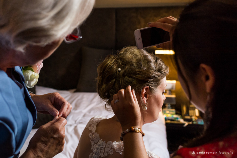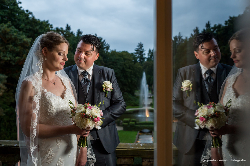 Uiteraard vooral een geluk voor het lieve en leuke bruidspaar Eveline & Mike die er een fantastische trouwdag hadden. Het begon al zo mooi met de ontmoeting tussen die twee. Dat beloofde een hele mooie dag te worden! De foto's van hen samen maakten we rondom en in het kasteel die eindigde met een kussengevecht in de bruidssuite. Jeetje wat waren die twee fanatiek zeg. De huweljksceremonie was heel mooi met veel plezier en een traan. En wat heerlijk als je op het terras van het kasteel met uitzicht op de schitterende kasteeltuin van de bruidstaart en de champagne in het zonnetje kunt genieten. Dan kan geluk echt niet op!
